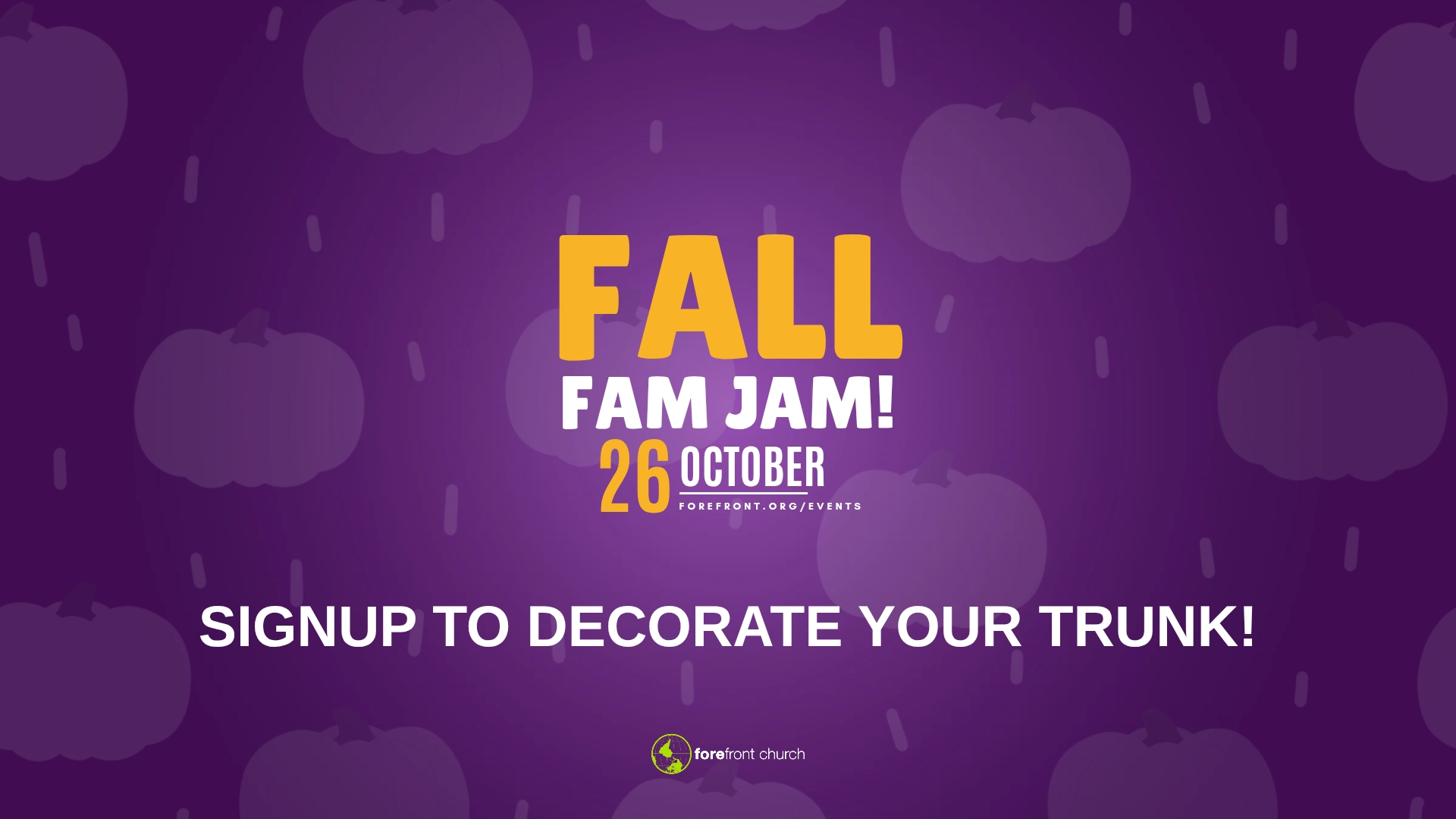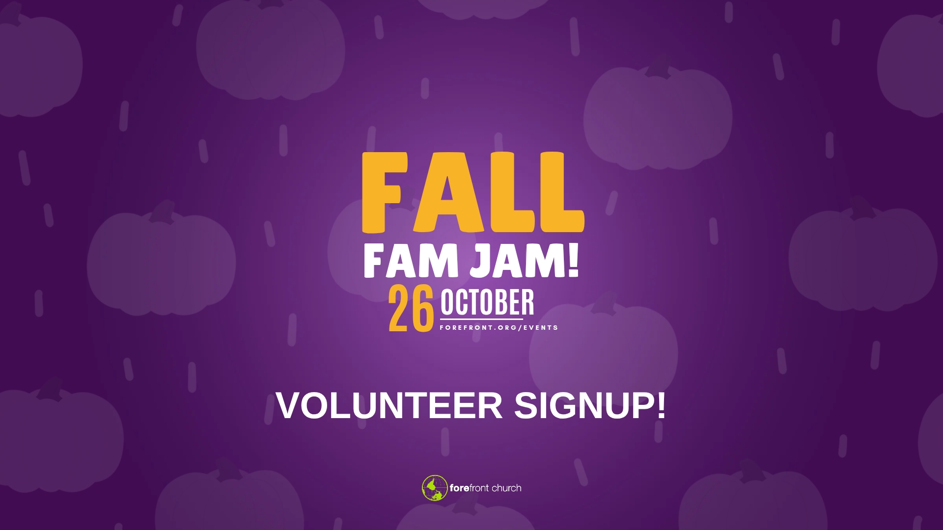 Signup to help make Fall Fam Jam an amazing experience for our community. This is a great way to meet new people and to help people find and follow Jesus!